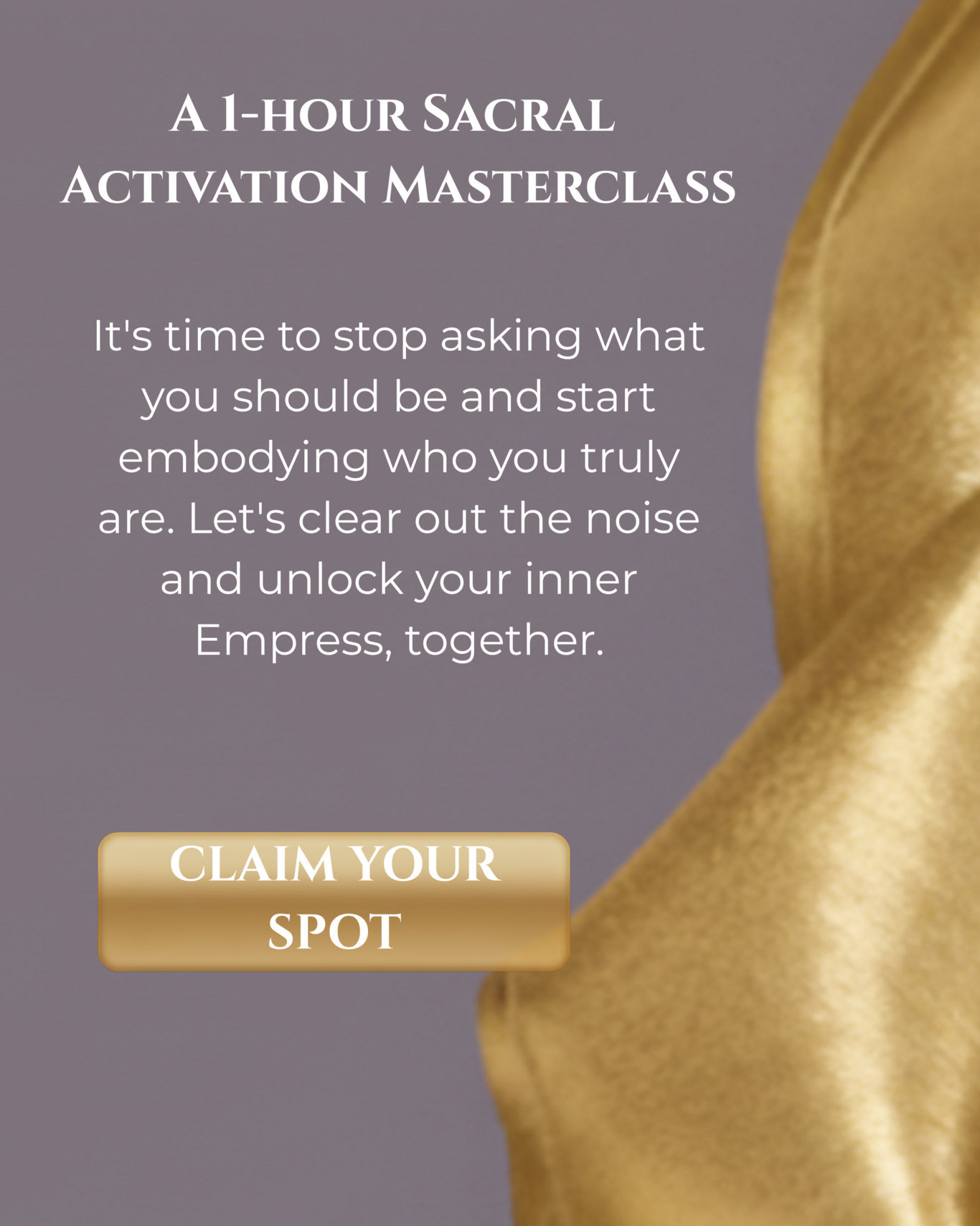 This masterclass is my answer. It's an intimate invitation to go on the same journey. To shed the expectations, clear out the noise, and come back home to the real you. The Empress.